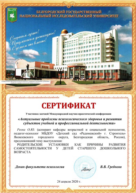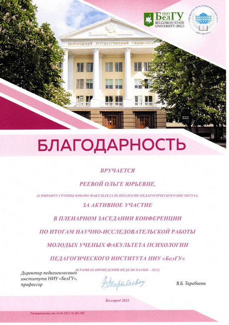 Аспирантура НИИ БелГУ (Белгородский государственный университет), психология развития, акмеология |