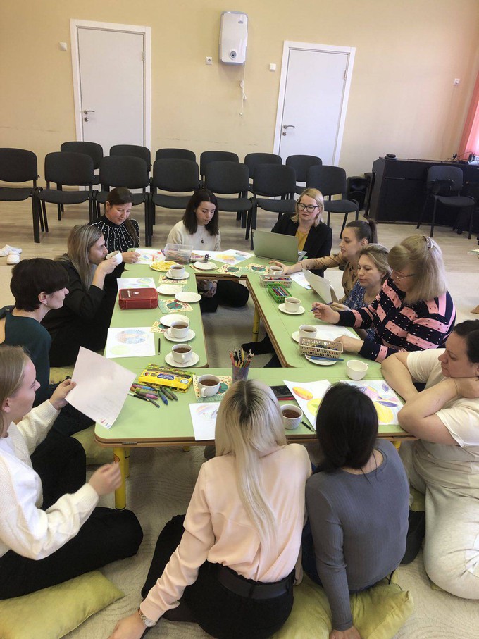 Поддержание психологического здоровья и эмоционального комфорта для педагога - неотъемлемая составляющая профессионального развития. Арт -терапевтическое рисование - это богатейший ресурс для поддержания состояния гармонии, саморазвития и релаксации. Педагоги погружаются в мир собственных фантазий и самопознания, создают свои рисунки, открывают значения цвета, формы, линий, геометрических фигур.