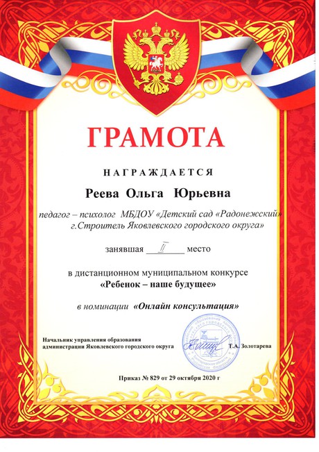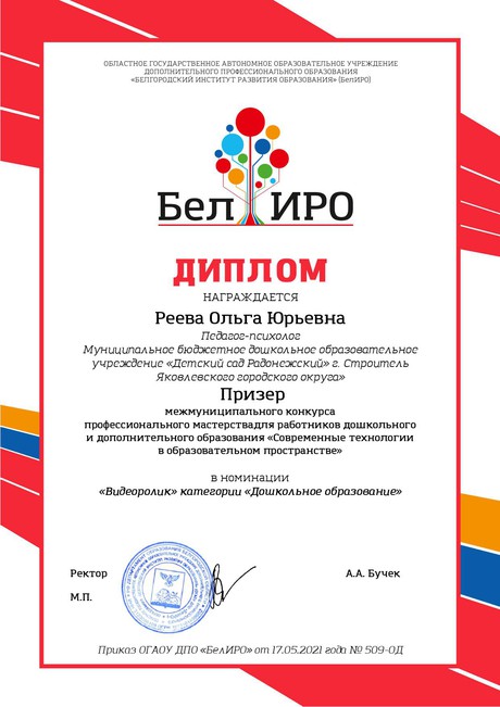 Квалификационная категория: Высшая; приказ Министерства образования Белгородской области от 25 февраля 2022года № 651