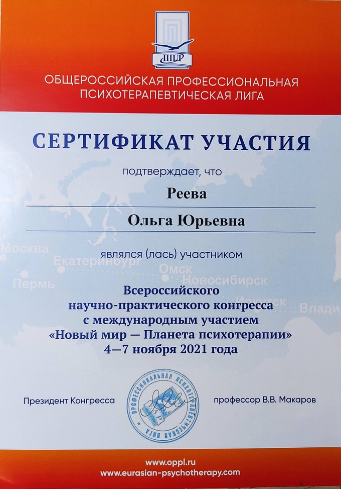 Действительный член Общероссийской профессиональной психотерапевтической лиги (ОППЛ)