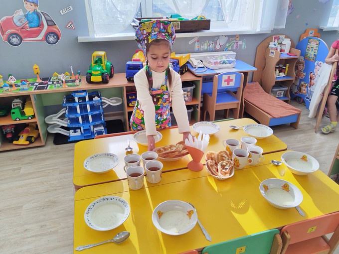 Систематически ведется подсчёт выполнения натуральных норм питания и калорийности пищи. В рацион питания регулярно включаются овощные салаты, фрукты, соки. Во время приема пищи в группах создана спокойная обстановка без шума, громких разговоров. Воспитатели следят за эстетикой питания, сервировкой стола, прививают детям культурно-гигиенические навыки.